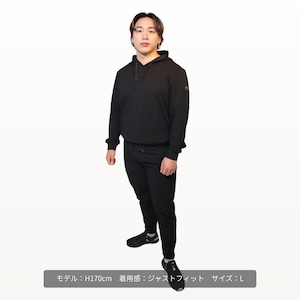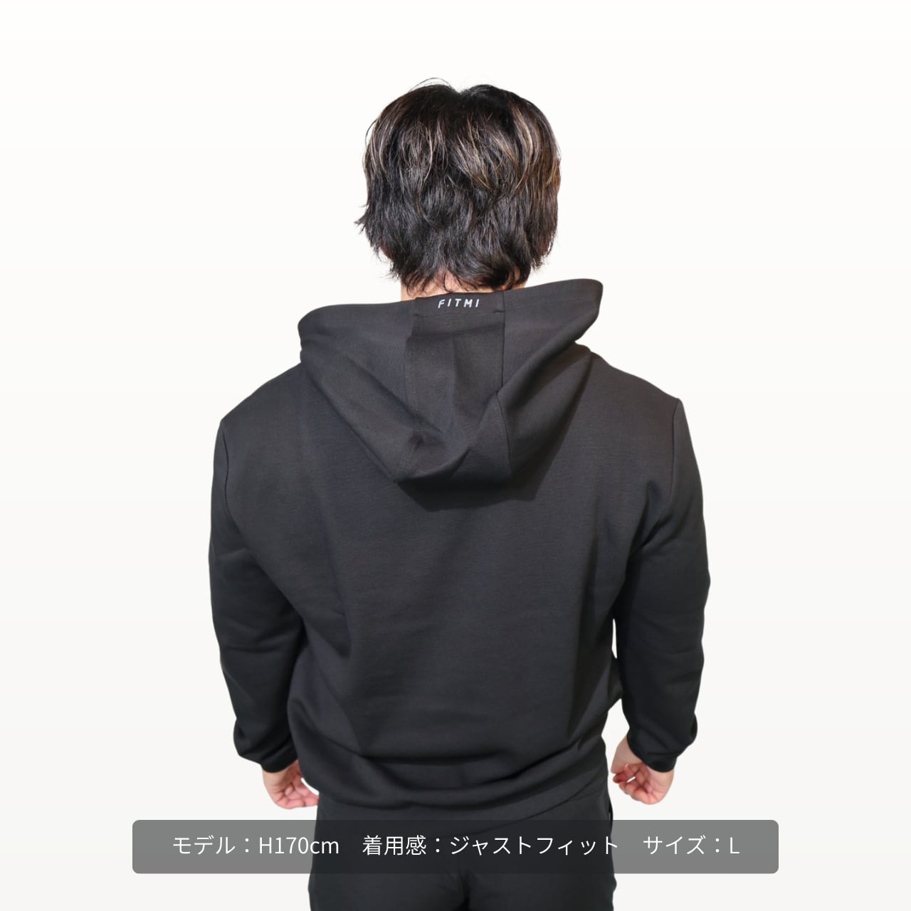 トレーニングの際や、ジムへの移動にも使いやすいFITMIのニットパーカー。